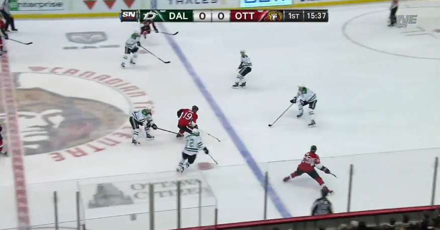 - The Sens give up an early 3-on-2. One of the two is Zack Smith, so 2-0 Stars.