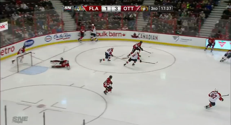 This game was over after two minutes, or at least the entertainment value was. The Senators turned out a better performance than we've been witness to of late, allowing only 28 shots, but they were still relatively inept at moving the puck up the ice without Karlsson. Presumably every defenseman on the team had to break out of his own zone previously in his career, but it doesn't look like it. Ottawa has a nice 3 game winning streak going now, but they'll need improved competence with the puck from their d-men if they want to beat a team that isn't coming in with a seven (Florida) or four (Columbus) game losing streak.